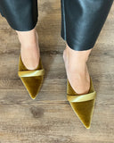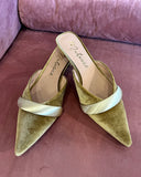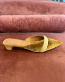 We are loving this mule for the holidays! It’s a beautiful chartreuse color that honestly can be kind of a neutral. It does run a little big so we’d suggest sizing down a 1/2 size (Allie wears an 8 and would get the 7.5 in these).