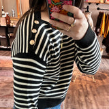This is such a cute sweater and we love the button detail! It does run a little small so you may want to size up.