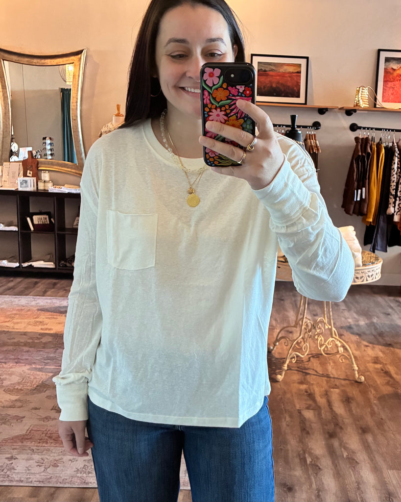 This is a great basic that is perfect for layering! Love the pocket detail as well. Fit is true to size.