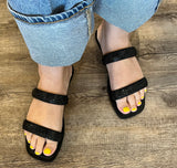 Obsessed with this new sandal! It’s a little dressier and is so so comfy! Fit is true to size and these are made from manmade materials.